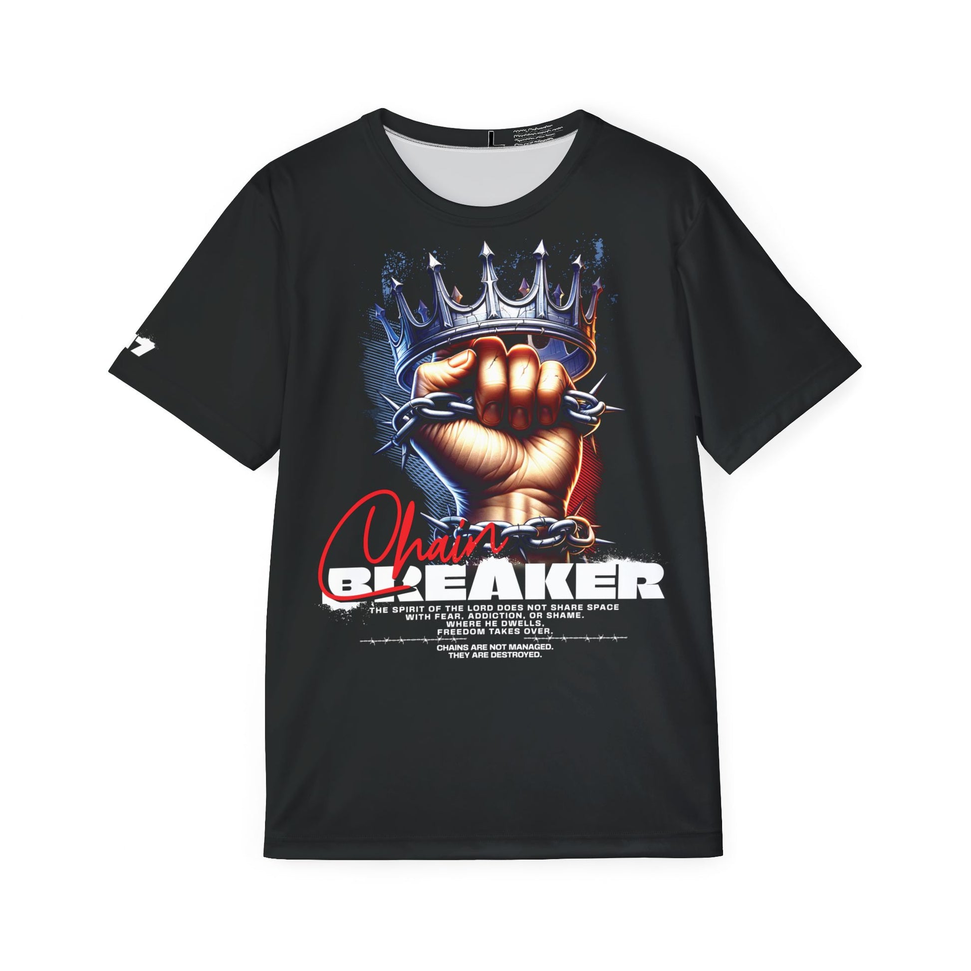 2 Corinthians 3:17- Chain Breaker-Polyester Tee (AOP)